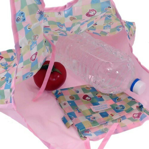 エコバッグ 折りたたみ ショッピングバッグ 市松 ドラえもん × ハローキティ サンリオ 松尾繊維工業 お買い物かばん ティーンズ雑貨 メール便可 マシュマロポップ