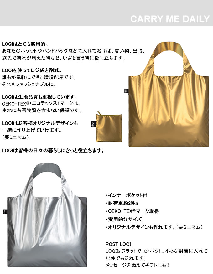 【メール便で送料無料】 LOQI エコバッグ メタリックマット / エコバッグ LOQI レジカゴ 折りたたみ ドイツ 大きめ おしゃれ 軽量 トート ブランド ローキー マザーズバッグ エコバック ゴールド シルバー マット お買い物バッグ ショッピングバッグ
