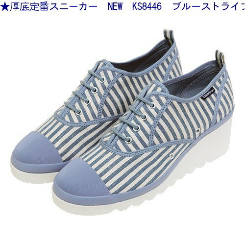 ♪1番人気のヒールスニーカー在庫処分の限定特価。★キサスポーツKISSA /KS8446/ブルーストライプ 人気の厚底スニーカーアレンジモデル/
